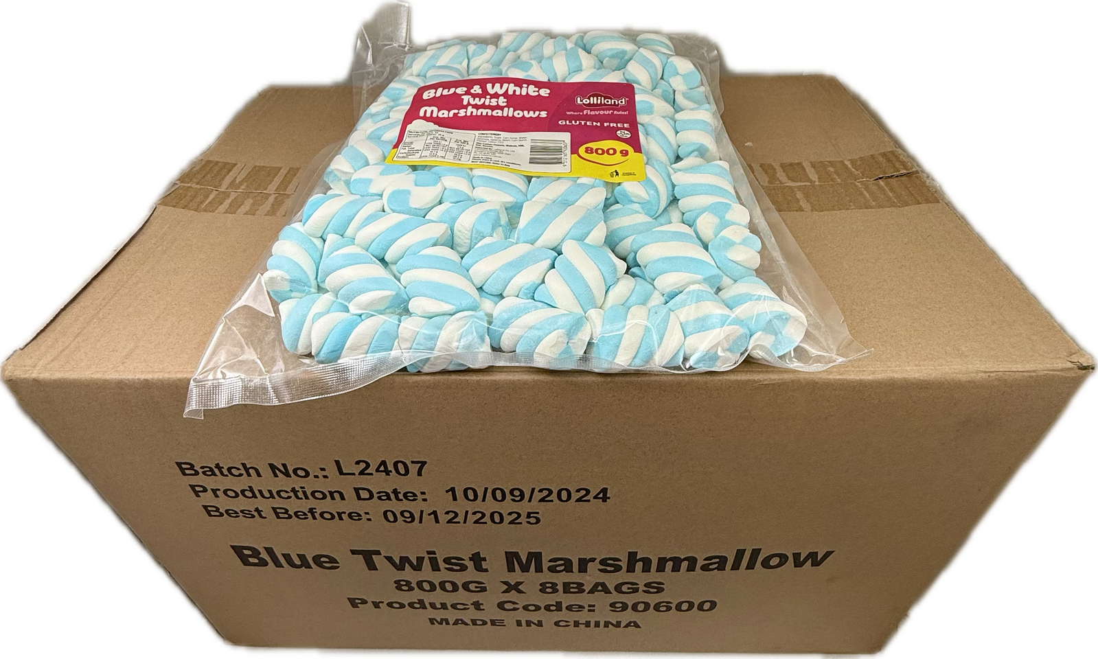 Our Blue Marshmallow Twists 800g – 8 pack Bulk Carton is a favorite in gourmet foods for Bulk Blue Twist Marshmallows, Bulk Twist Marshmallows, Blue Marshmallows. Perfect for Making Rocky Road