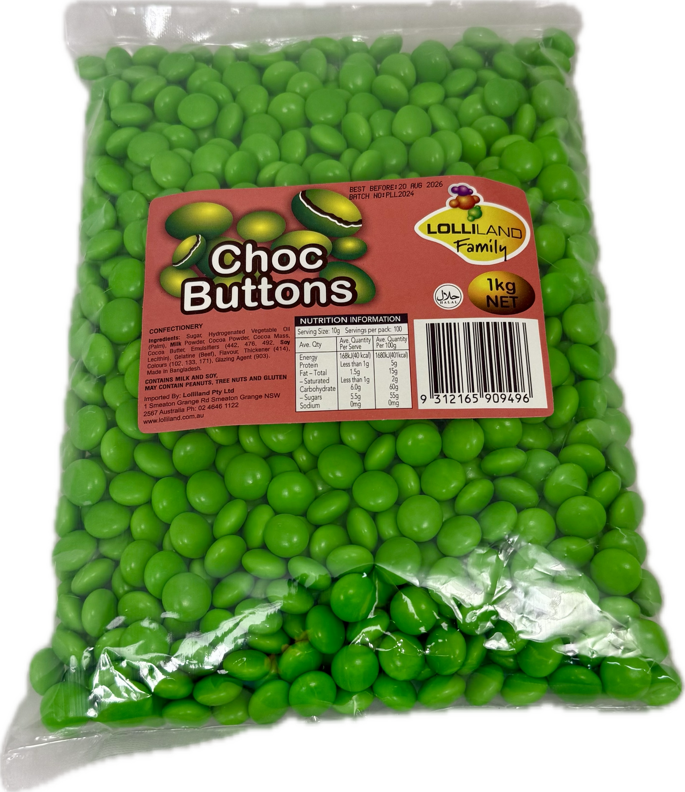 Our Choc Buttons Green – Bulk 1kg Bag is a favorite in gourmet foods for chocolate button green, choc buttons green 1kg.. Can ship overnight in most major metro areas