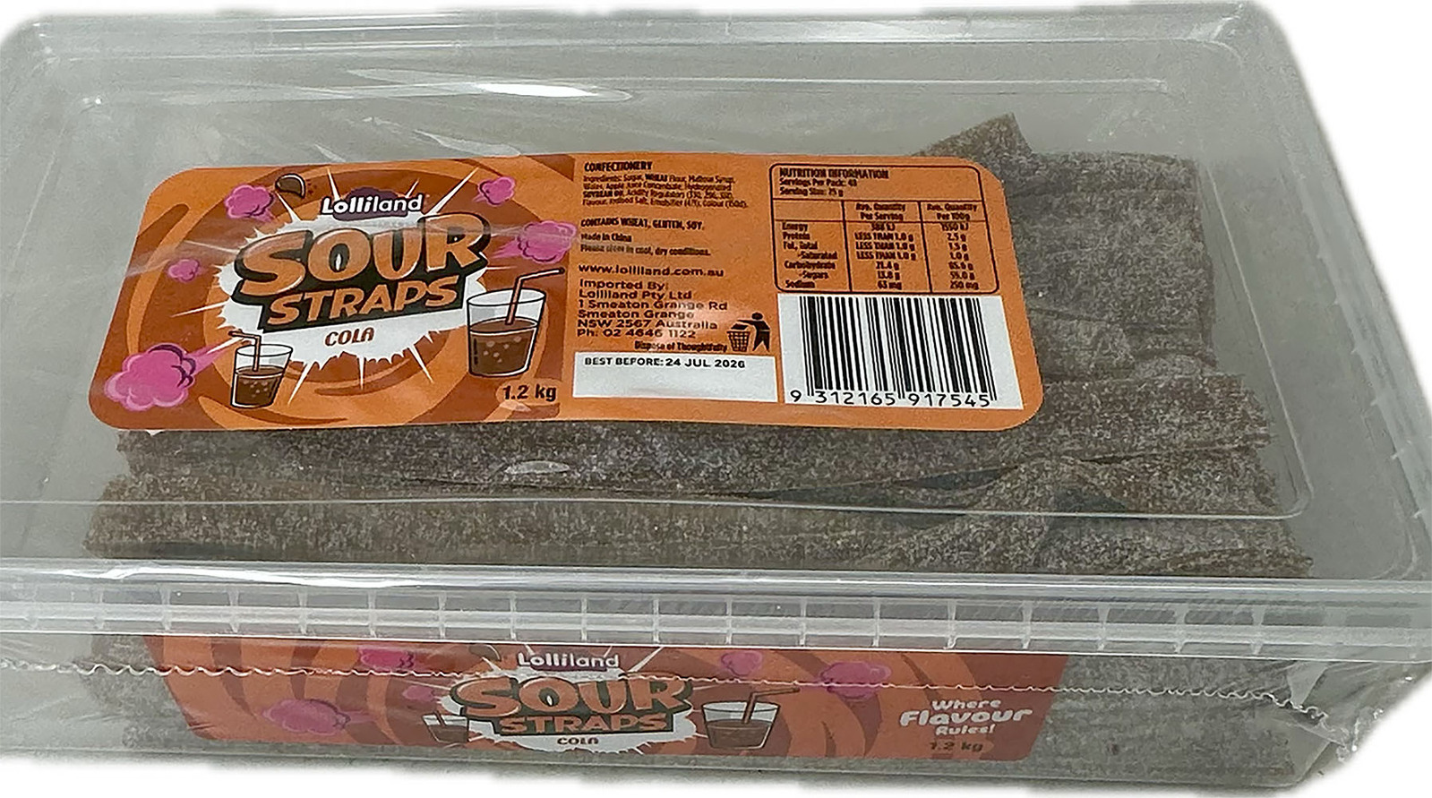 Lollinaut brands Cola light Sour Straps 1.2kg will tickle your taste buds. They are coated with sugar with approximately 160 straps per tub.