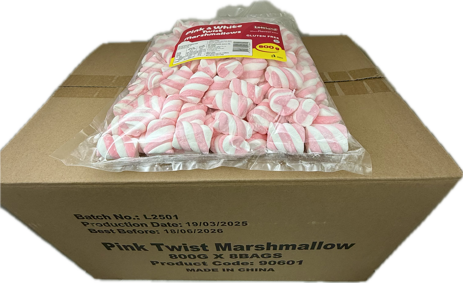 Our Pink & White Marshmallow Twists 800g – 8 pack Bulk Carton is a favorite in gourmet foods for Bulk Pink & WhiteTwist Marshmallows, Bulk Twist Marshmallows, Pink Marshmallows. Perfect for Making Rocky Road